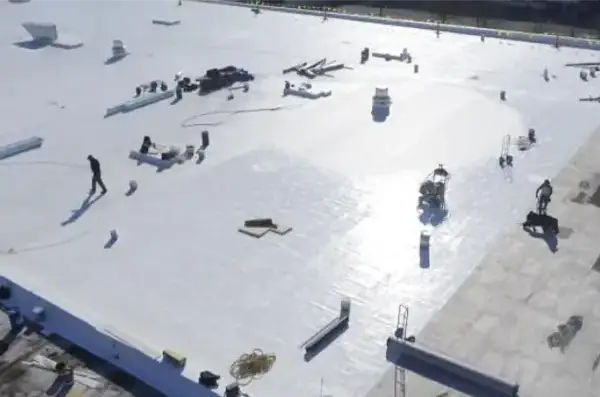 • Durability: TPO is highly resistant to grease, chemicals, and punctures, making it the standard for warehouse roofing contractors.