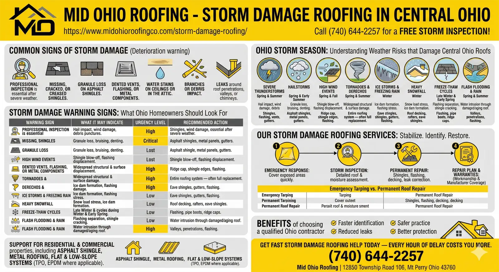 Yes. Mid Ohio Roofing provides storm damage roofing services for both residential and commercial properties, including different roof materials and system types.